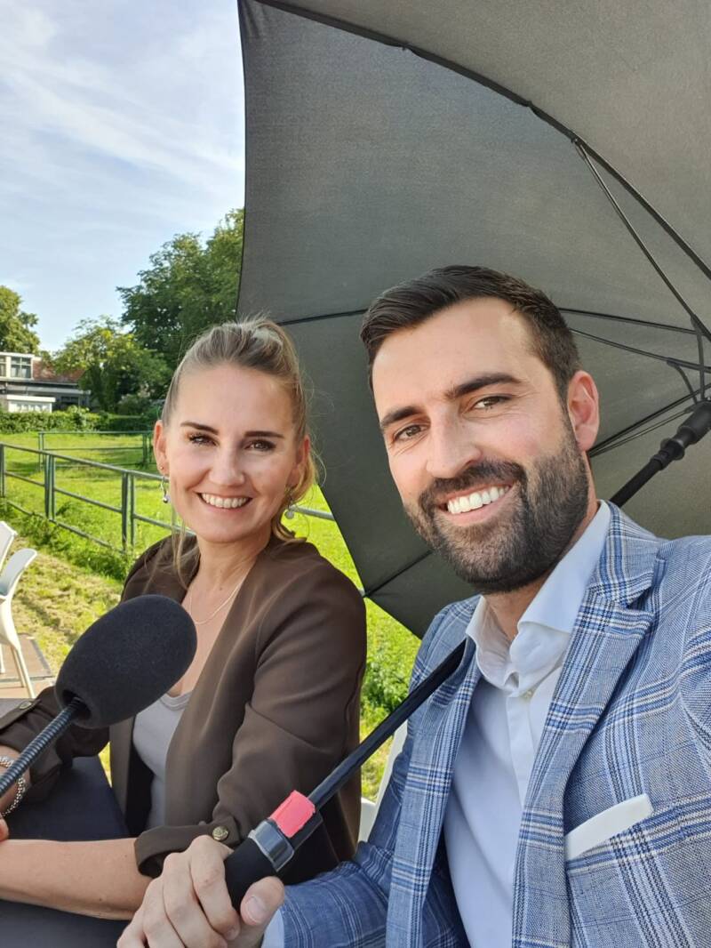 Bjorn en Peggy tijdens de opnames van de film "White Star" waar Britt Dekker haar acteerdebuut maakt.